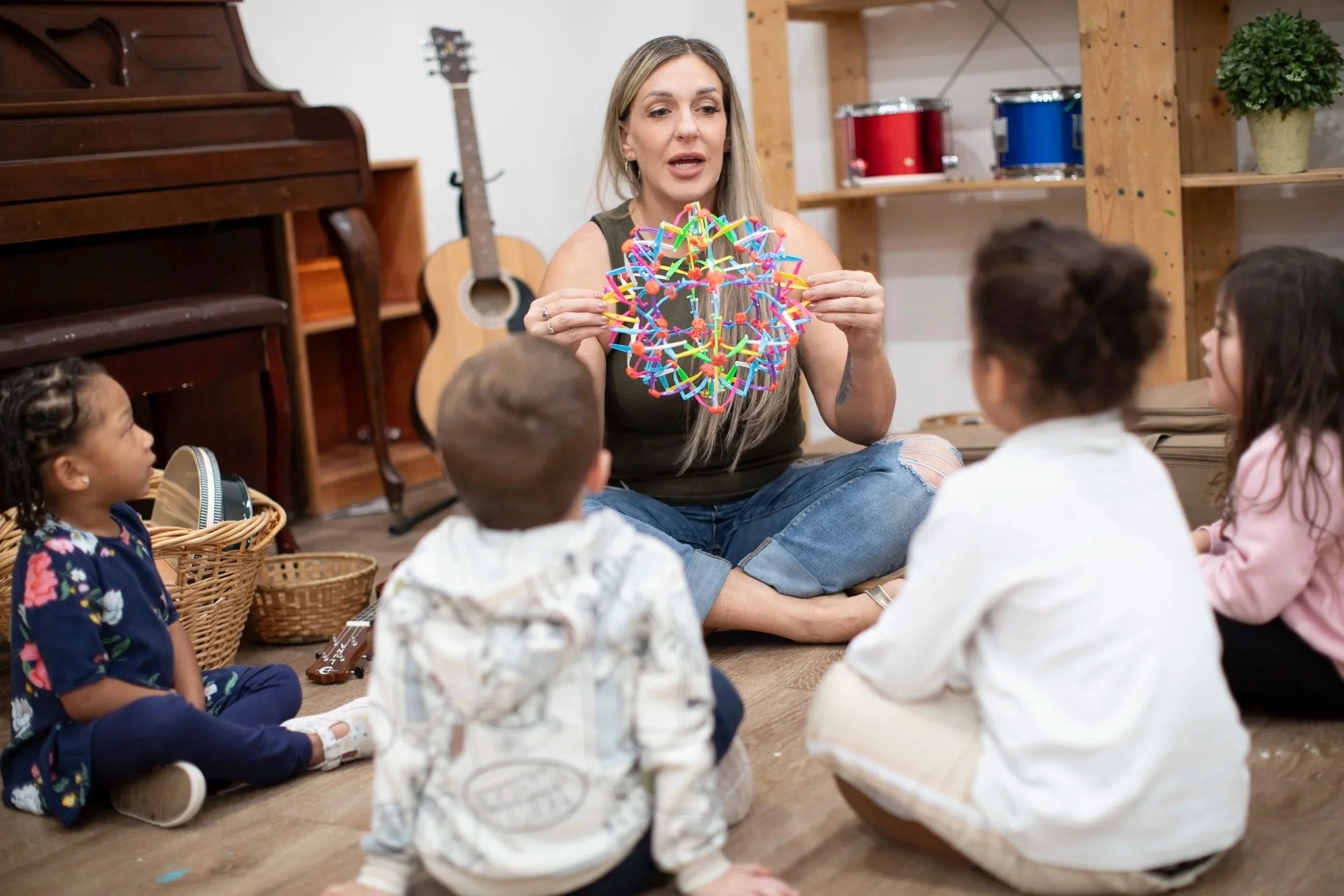 Bright colored instruments made just the right size for tiny hands will also enhance the sensory and auditory experience. A wealth of research is constantly revealing new benefits of early introduction to music and mindfulness, so sign your favorite little person up today!!!